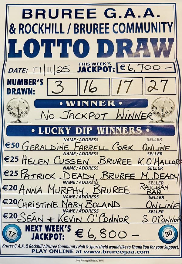 Lotto About Photos Contact History Honours Child Safeguarding MerchandiseDownload our mobile app to hear more about Bruree GAA.
