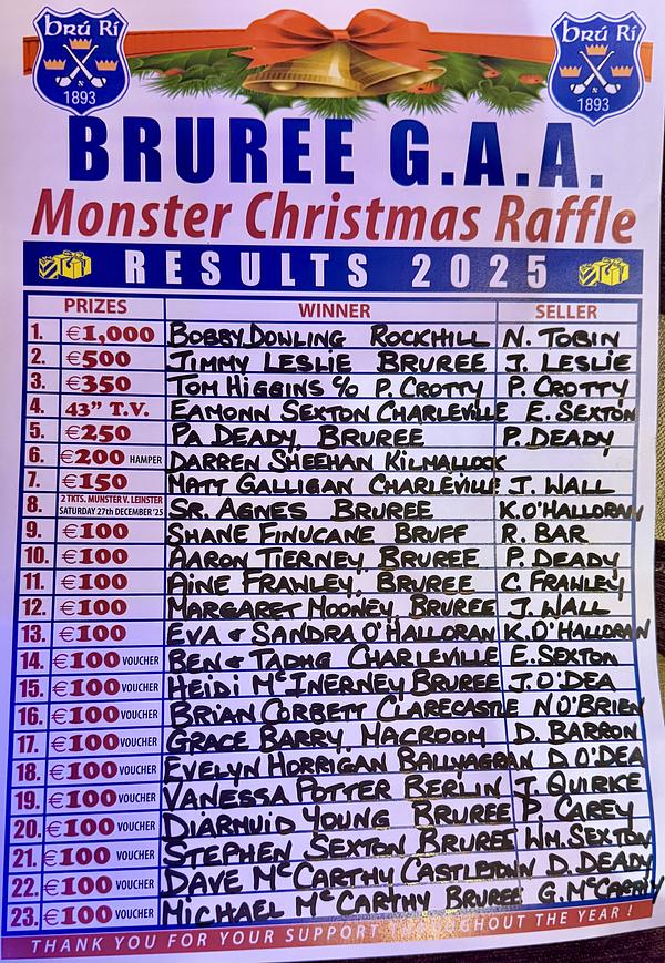 The club would like to thank everyone who sponsored prizes and supported the draw. Massive thanks to our Main Sponsor Judy & Owen Tobin.