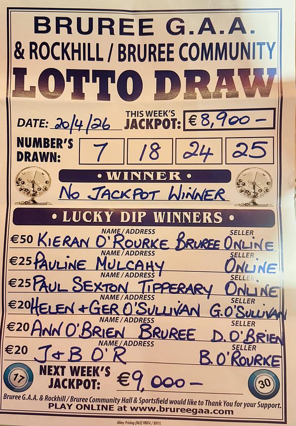 Lotto About Photos Contact History Honours Child Safeguarding Merchandise FundraisingDownload our mobile app to hear more about Bruree GAA.