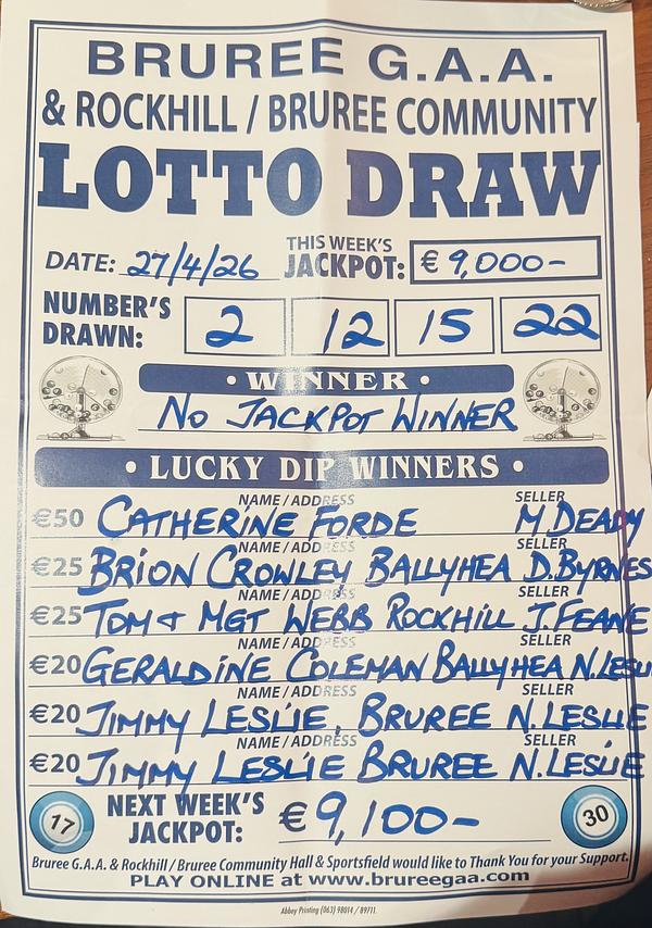 Lotto About Photos Contact History Honours Child Safeguarding Merchandise FundraisingDownload our mobile app to hear more about Bruree GAA.