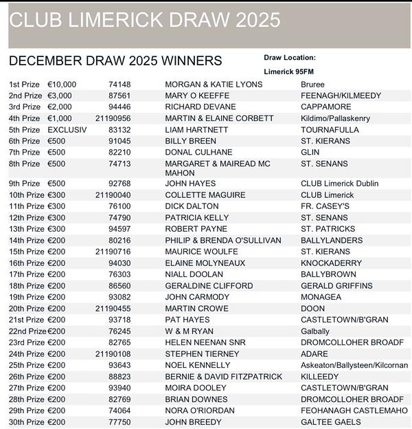 A fantastic result and a brilliant way to finish the last draw of 2025. Everyone in Bruree GAA is delighted for you both.
